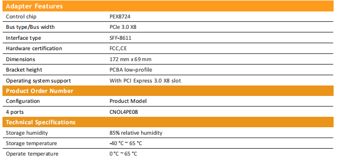 1. Broadcom's PEX8724 chip, which has low latency and high throughput characteristics, is critical for the data transfer rate of the card. Especially in servers or workstations where multiple high-speed storage devices need to be processed at the same time, low latency can effectively improve the overall performance.