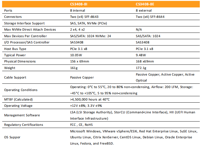 CEACENT CS3408-8E is a PCI Express 3.1 * 8 eight port HBA hard disk expansion card independently developed by CEACENT based on the LSI SAS3408 main control scheme. The adapter automatically negotiates backward compatibility with previous SAS and PCI-E versions; This HBA expansion card comes with two Mini SAS HD SFF8644 * 2 channel types and supports up to 8 12Gb/S SAS/SATA hard drives;